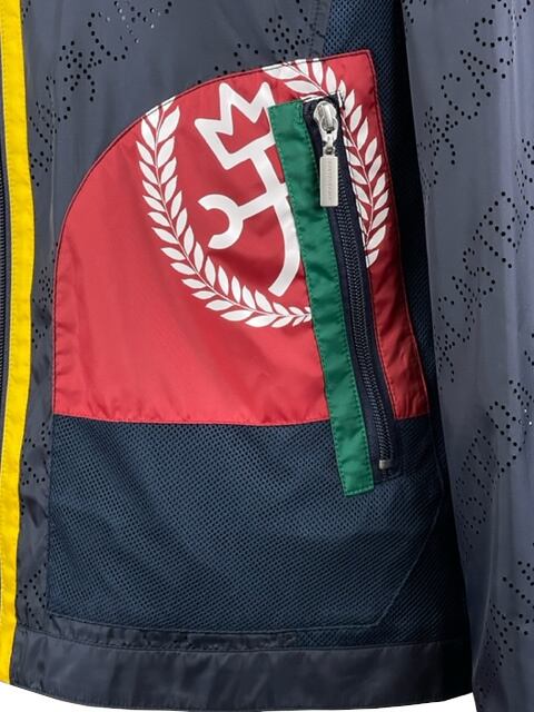 ブランドロゴのパンチング加工がお洒落なカステルバジャック(CASTELBAJAC)ジップアップブルゾン。