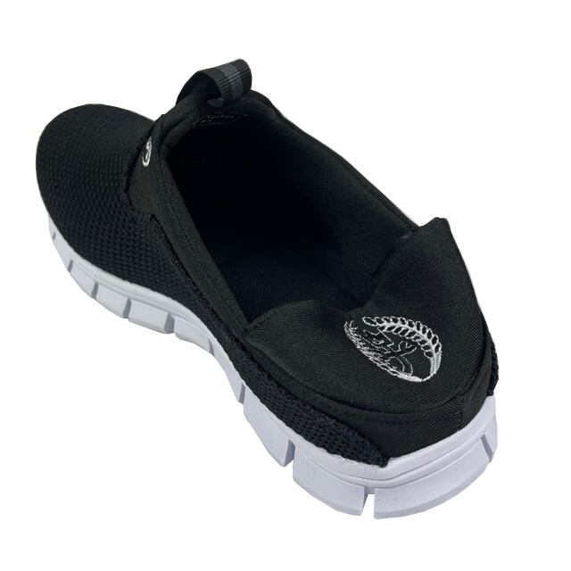 ポリエステルのメッシュ調素材で切替られた、軽量でソフトなスリッポンタイプのメンズスニーカー。ロゴ刺繍や月桂樹のあしらわれたKAMONマーク刺繍がアクセント。