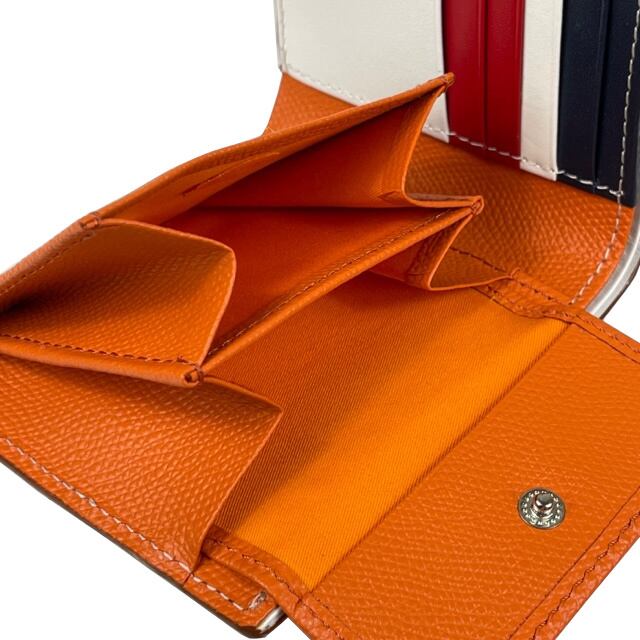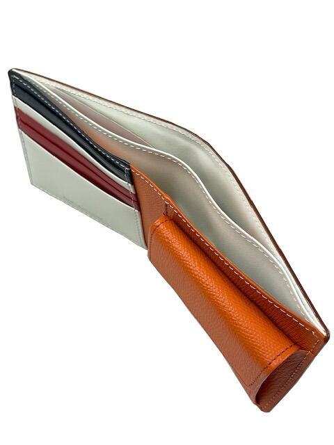 本体素材には、良質な原皮を国内タンナーで丁寧に鞣し長い時間を掛けてミーリングを施したソフトな風合いの軽量オリジナル牛革を使用した二つ折り財布。
