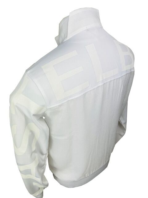 肩から袖に入ったロゴプリントがアクセントになっています。