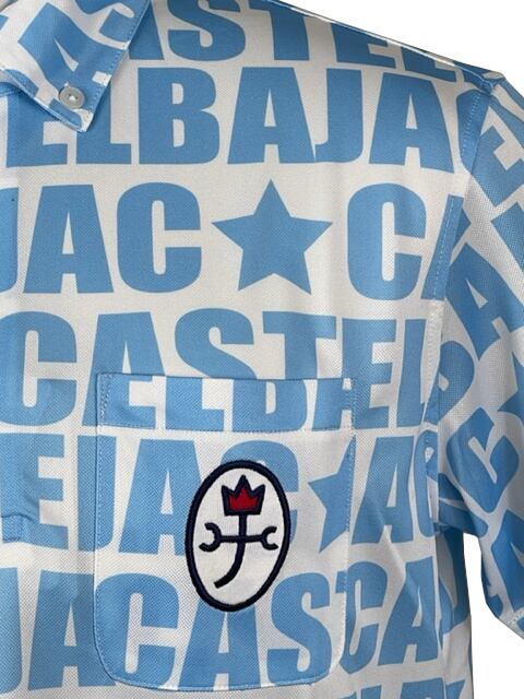 吸汗速乾、UVケア加工の施された半袖ボタンダウンポロシャツ。