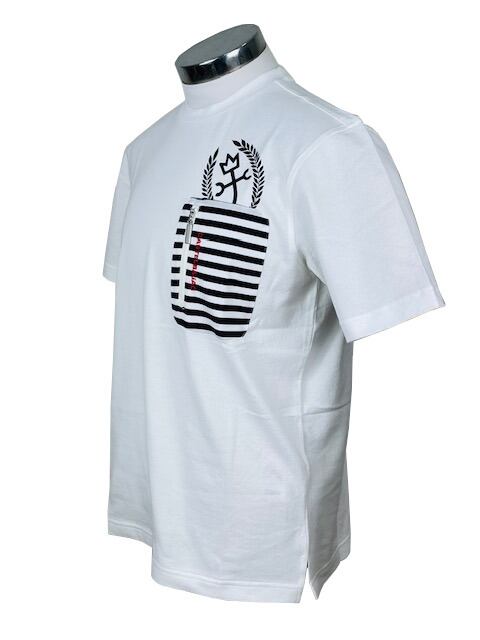 ファスナータイプのボーダー柄胸ポケットが付いたお洒落な半袖Tシャツ!