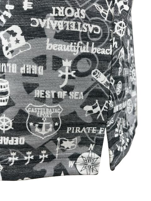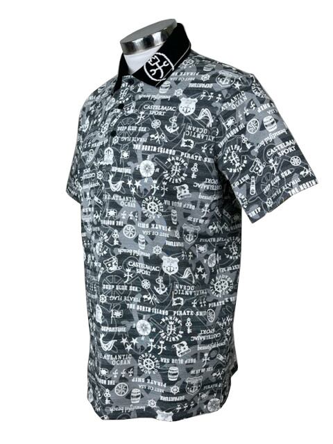 シャドーボーダー生地にオリジナルマリン総柄をプリントした半袖ポロ。