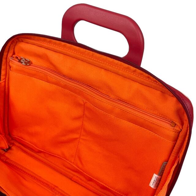 スリムなマチでも本体生地が柔らかいためハードなアタッシュケースよりも融通が利いて物を収納しやすくなっています。