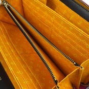 内装には鮮やかなイエローにモノグラム柄の生地を採用。