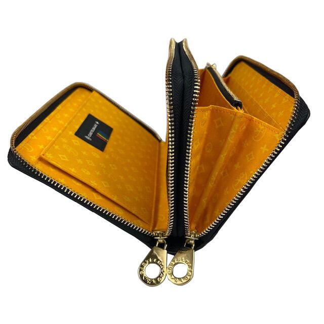 内装には鮮やかなイエローにモノグラム柄の生地を採用。
