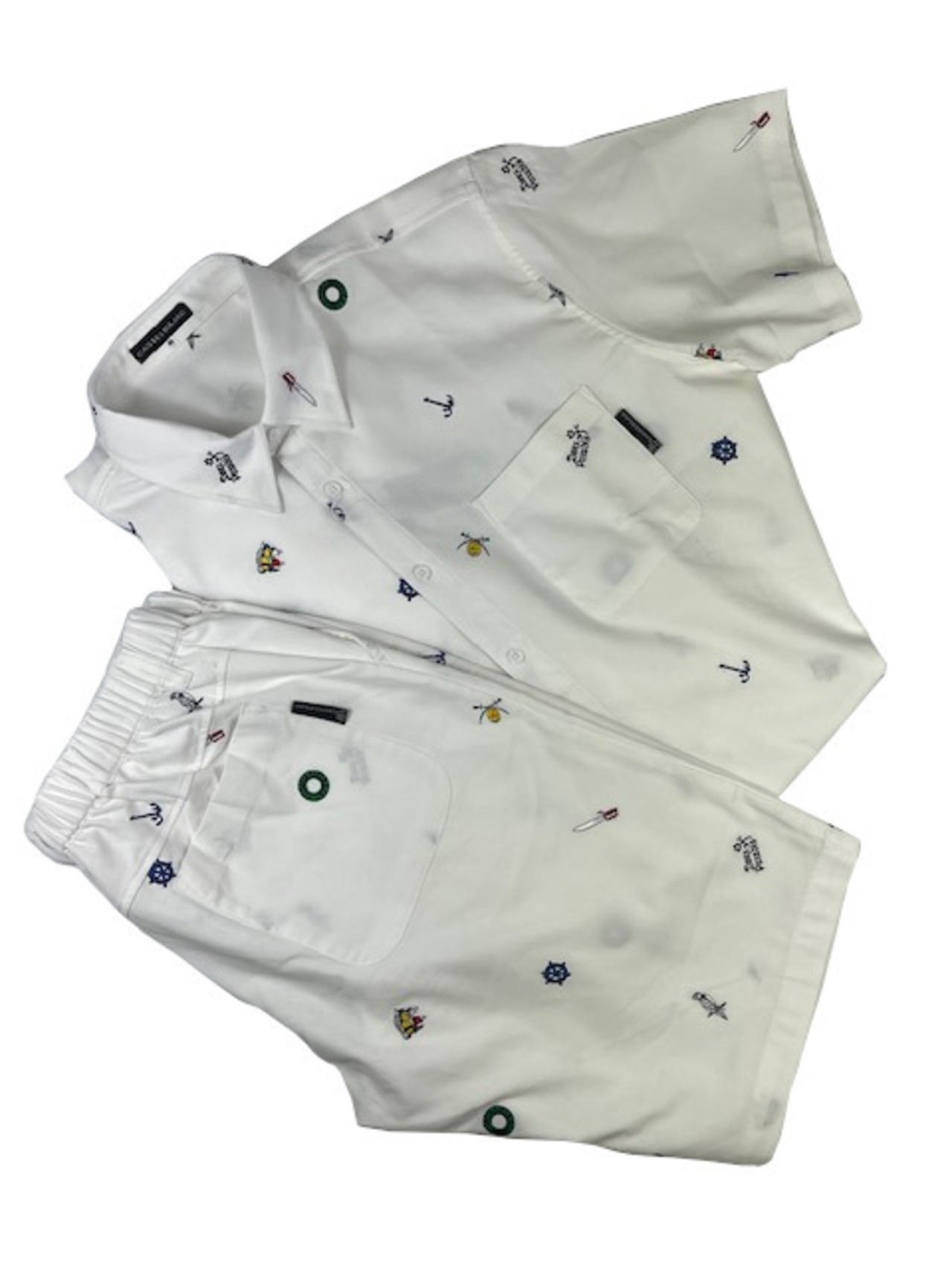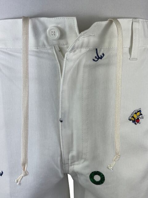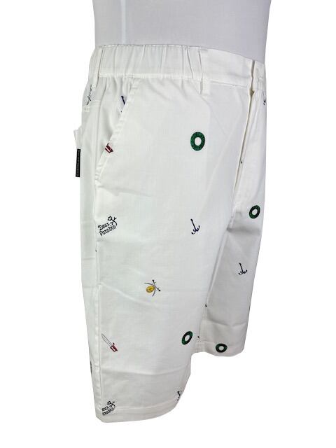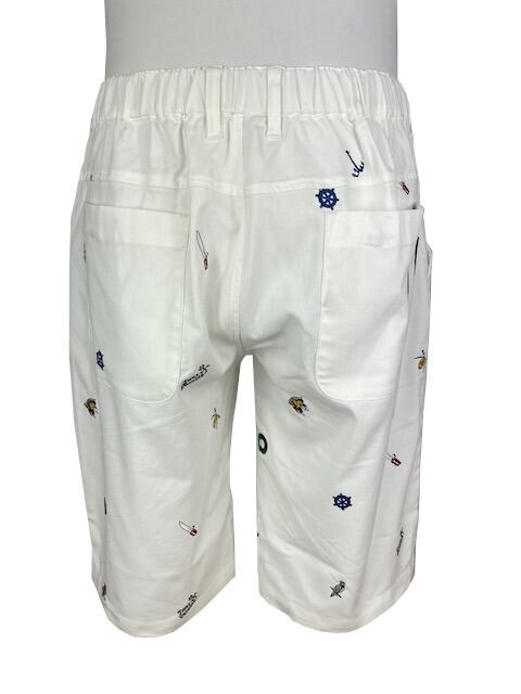 マリンモチーフの刺繍がランダムにデザインされたハーフパンツ。