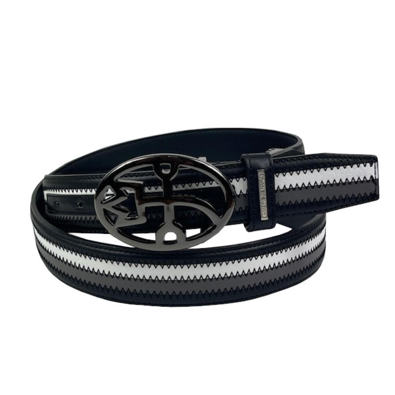 三色使いやステッチ加工がお洒落なカステルバジャック(CASTELBAJAC)高級牛革ベルト。