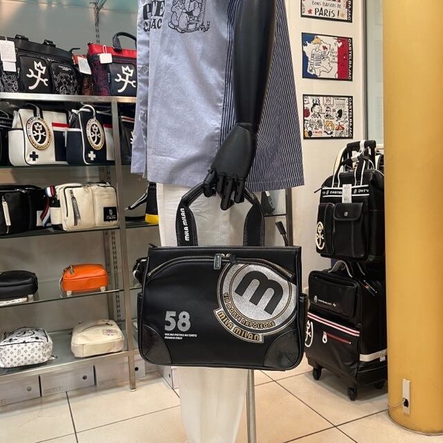 ゴルフウェアを街着にするようなスポーツカジュアルをイメージした、ミラ・ミランのドライビングトートバッグ。
