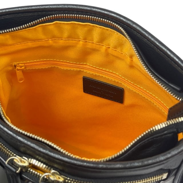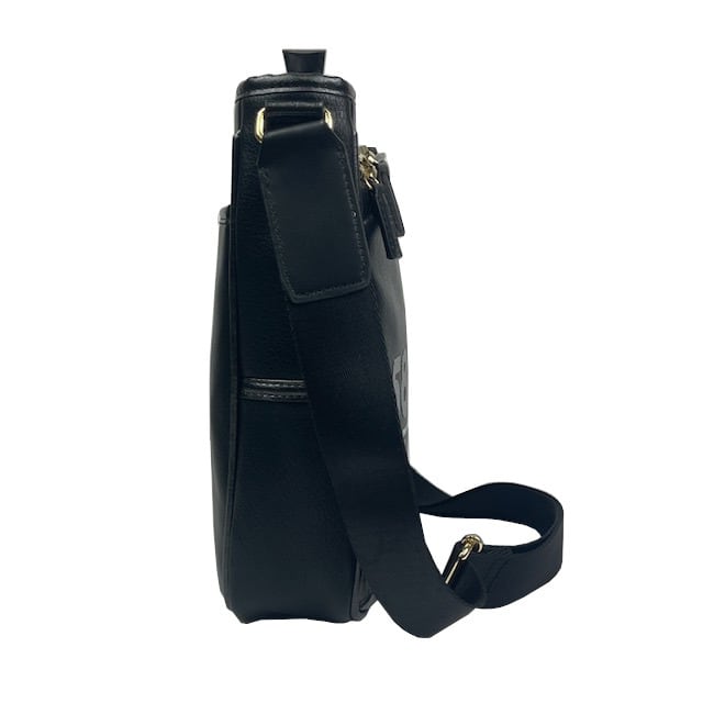 スポーツカジュアルをイメージしたミラ・ミランのショルダーバッグです。インパクトのあるブランドロゴとさりげなくメタリックカラーを施しているのがポイントです。本体素材にはポリウレタンレザーを採用し雨の日でも安心な防水性と軽量性を実現しました。収納部分は500mlのペットボトルが縦にすっぽり収まるサイズで、内装にイエローカラーを使用することで中身が見やすいようにしました。普段使いはもちろん、ゴルフや旅行にも大活躍のアイテムです。