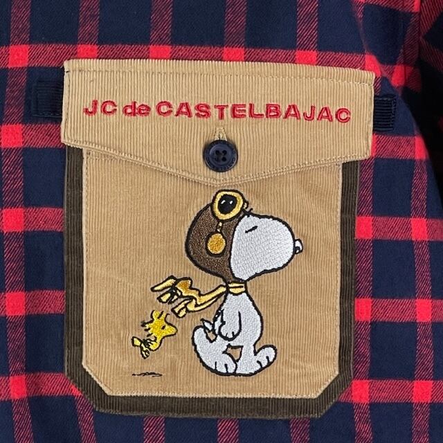 今シーズンコラボキャラのスヌーピーがデザインされた長袖ボタンダウンフランネルシャツ。