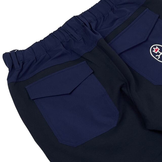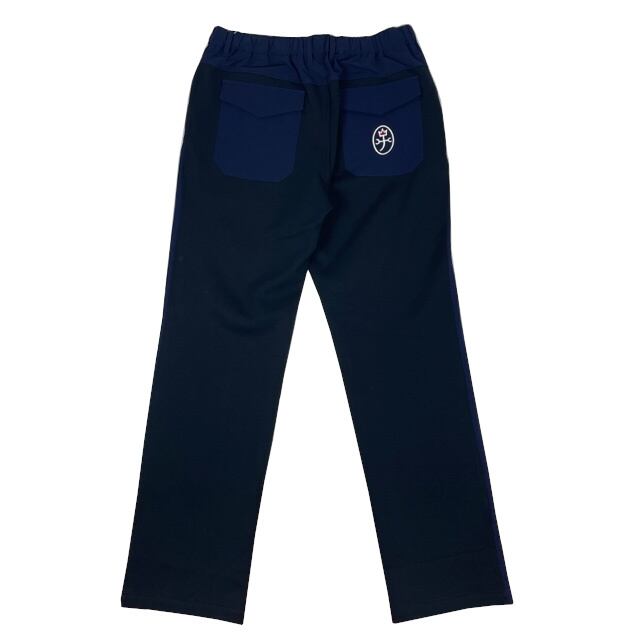 ソフトなジャージー素材とさらりとしたドライタッチな布帛で切替られたイージーパンツ。