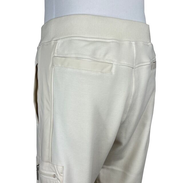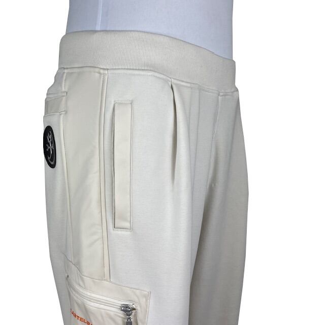 裏起毛のソフトで暖かなジャージー素材とポリエステル布帛で切替られたイージーパンツ。