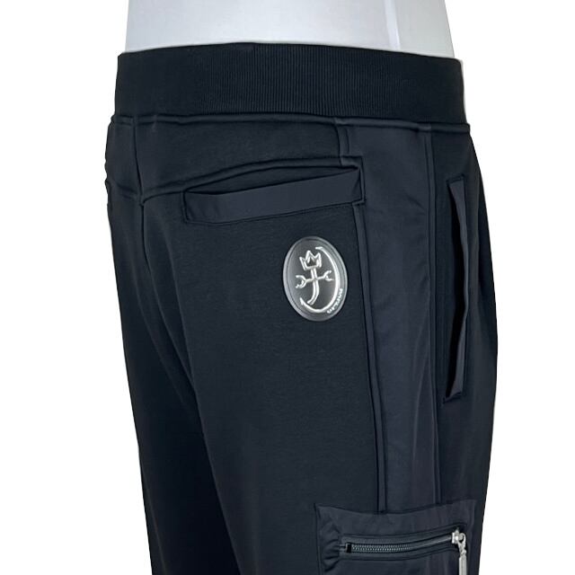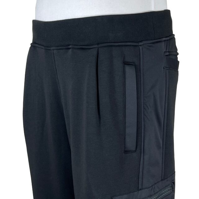 裏起毛のソフトで暖かなジャージー素材とポリエステル布帛で切替られたイージーパンツ。