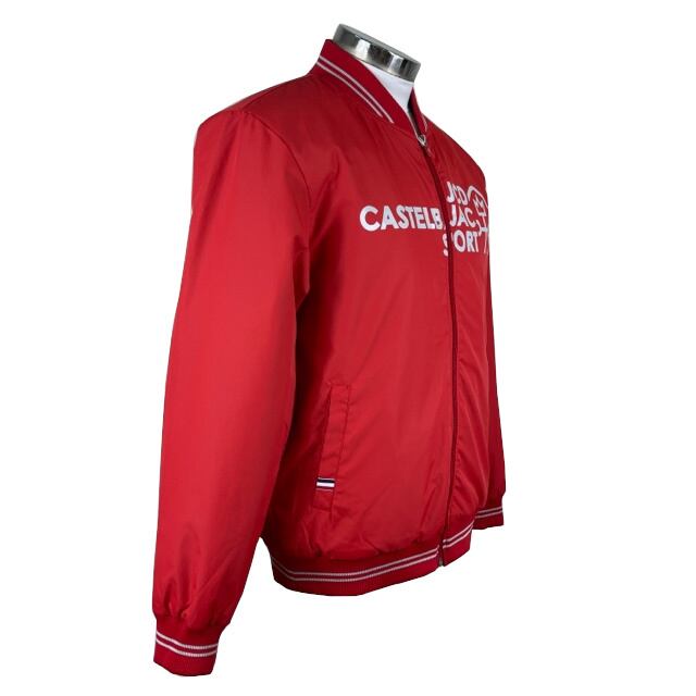 フロント・バック共にカステルバジャックのプリントが施されたカッコいいスタイルの中綿入りブルゾン。
