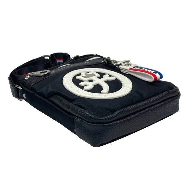 特徴的なトリコロール配色とシリコンワッペンとメタルパーツを使った大きなロゴマークが目を引くデザイン。