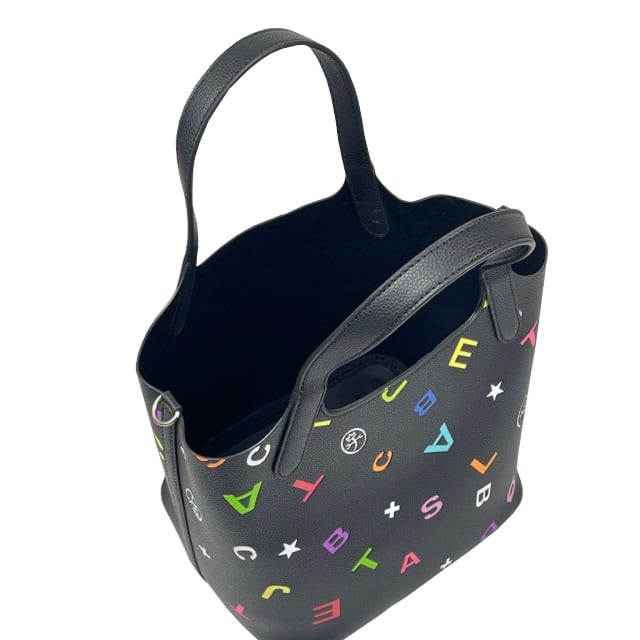 ロゴがランダムに散りばめられた新しいモノグラムをマルチカラーで表現したカステルバジャックトートバッグ。