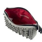 ロゴや家紋等、カステルバジャックのアイコンにスタッズを散りばめたインパクトのあるデザインのミニポーチ。