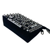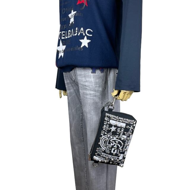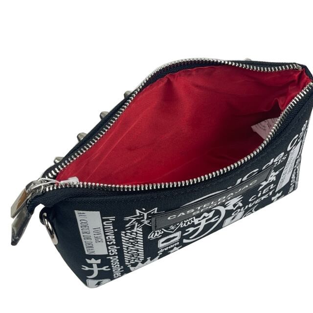 ロゴや家紋等、カステルバジャックのアイコンにスタッズを散りばめたインパクトのあるデザインのミニポーチ。