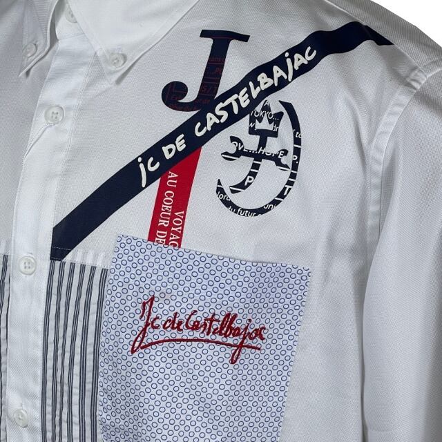 ドットプリントで切替られたデザインにロゴプリントやロゴ刺繍がアクセントになったカステルバジャック長袖ボタンダウンシャツ。