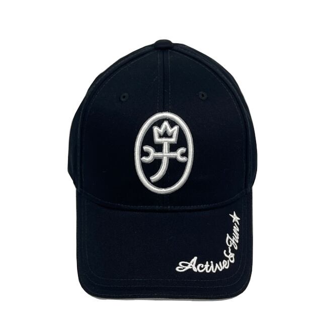 ツバ部分、後ろ部分に入ったロゴ刺繍や立体的なKAMONマーク刺繍がアクセント。