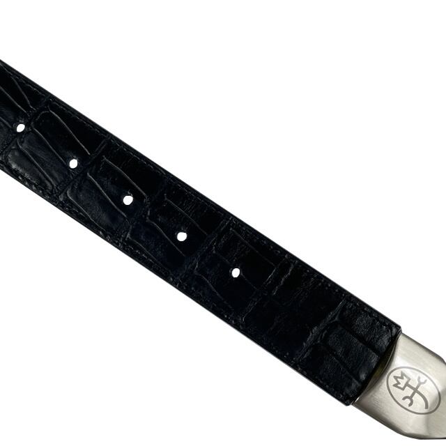 バックルのロゴプレートや剣先のKAMONマークがアクセント。