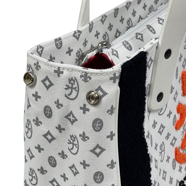 帆布生地にモノグラム柄が施されているので、シンプルなコーディネートにもアクセントをプラスしてくれます。