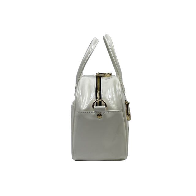 このミニボストンバッグも、そのファッションアイテムのひとつ。エナメル素材を使った上品なデザインは、どんな場面でも存在感を放ちます。ぜひ、お気に入りのアイテムに加えてください。