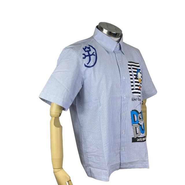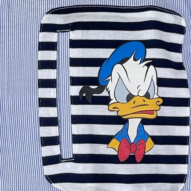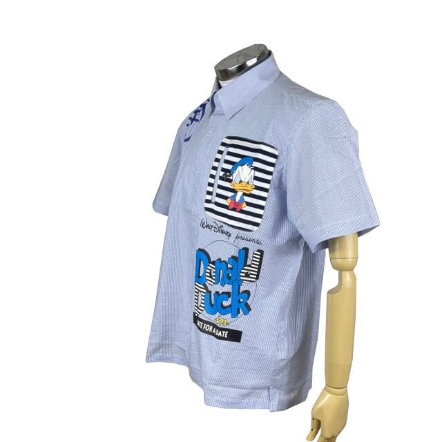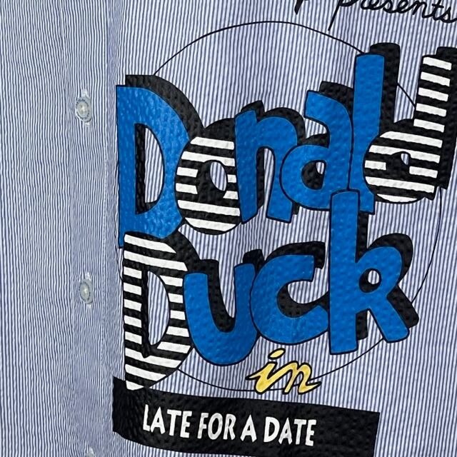 今シーズンコラボキャラのドナルドダックがデザインされた、サッカーストライプ半袖ボタンダウンシャツ。