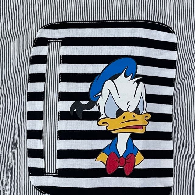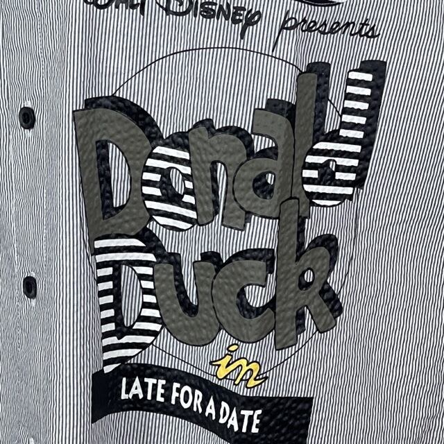 今シーズンコラボキャラのドナルドダックがデザインされた、サッカーストライプ半袖ボタンダウンシャツ。