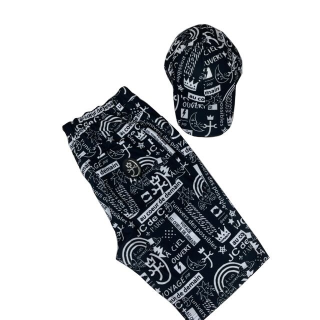 カステルバジャックならではのPOPなモチーフ総柄やKAMONマークの合皮ワッペンがアクセント。