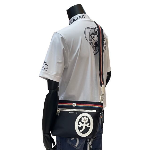 6色で表現した極太レインボーテープがポイントのユニセックステイストショルダーバッグ。