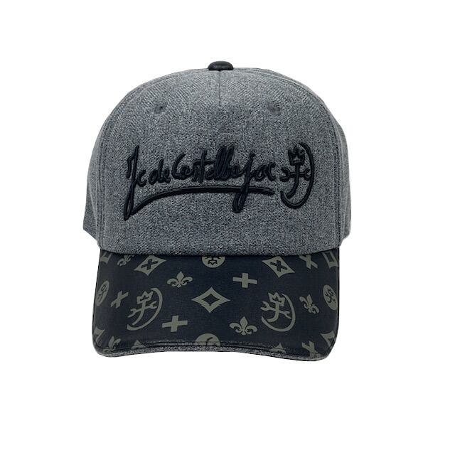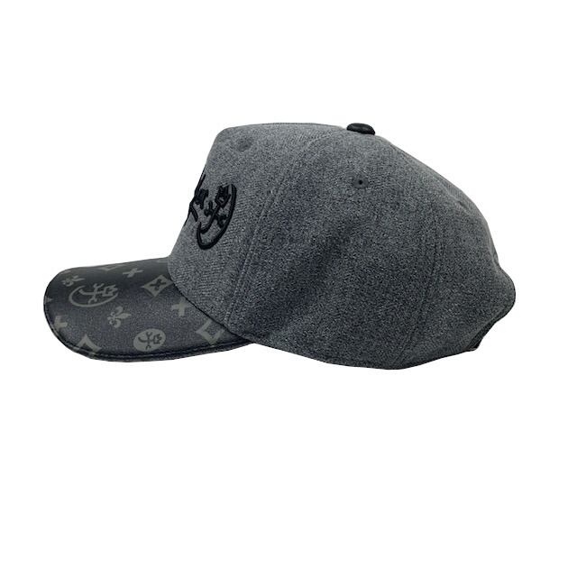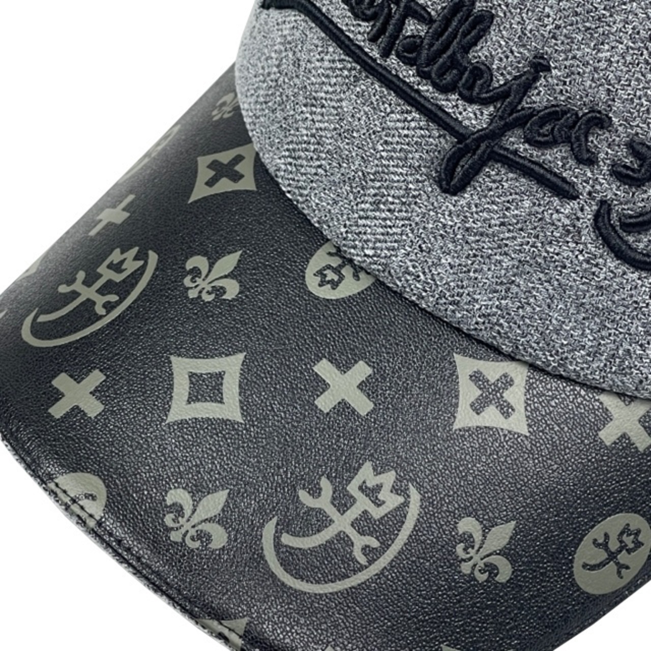 合皮素材を使用したツバ部分にオリジナルロゴモノグラム柄をプリントしたお洒落なスタイル。