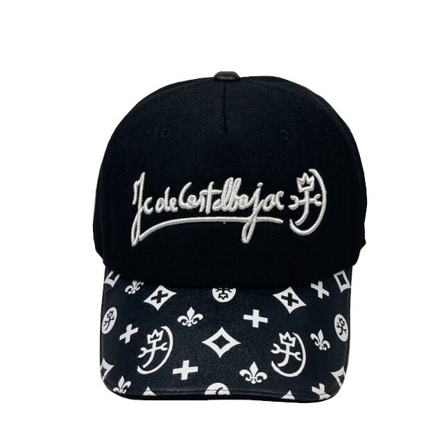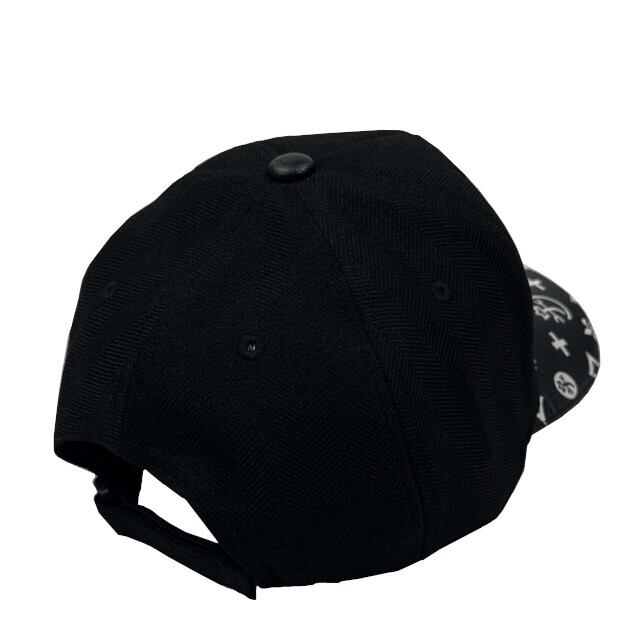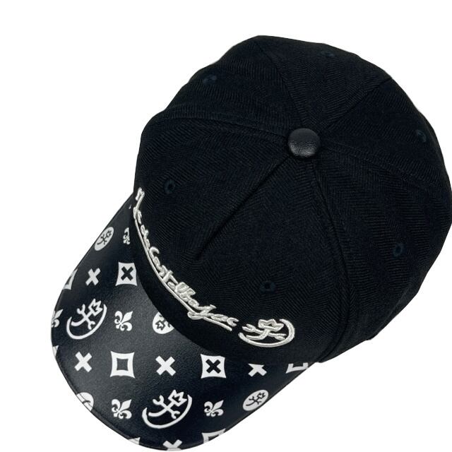 合皮素材を使用したツバ部分にオリジナルロゴモノグラム柄をプリントしたお洒落なスタイル。