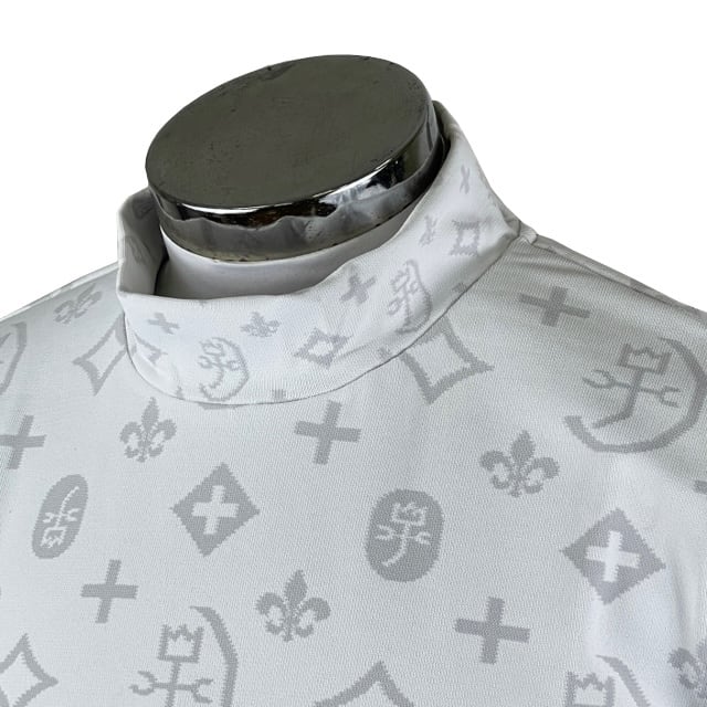 トレンド感溢れるカステルバジャックのハイネックシャツです。全体柄にはクラシックなモノグラム柄を使用し、高級感を演出。ジャガード織りなので、表面に立体感があり、デザイン性も抜群です。ハイネックデザインは首元をしっかりと包み込み、寒い季節でも暖かさをキープ。ゴルフシーンはもちろん、スポーツ観戦やカジュアルなデイリーコーデにもおすすめです。カステルバジャックならではの洗練されたデザインと機能性で、上品なスタイルを演出します。