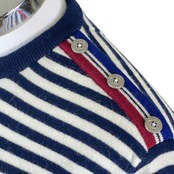 肩口に付けられたメタル釦デザインが首元を華やかに演出し、おしゃれ度もアップします。