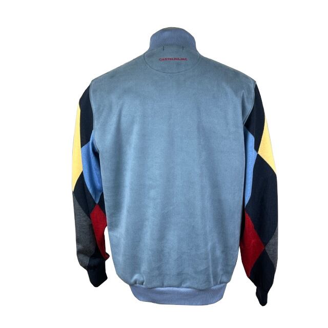 スウェード調素材と袖のニット切替が高級感を演出するカステルバジャックハーフジップトレーナー。
