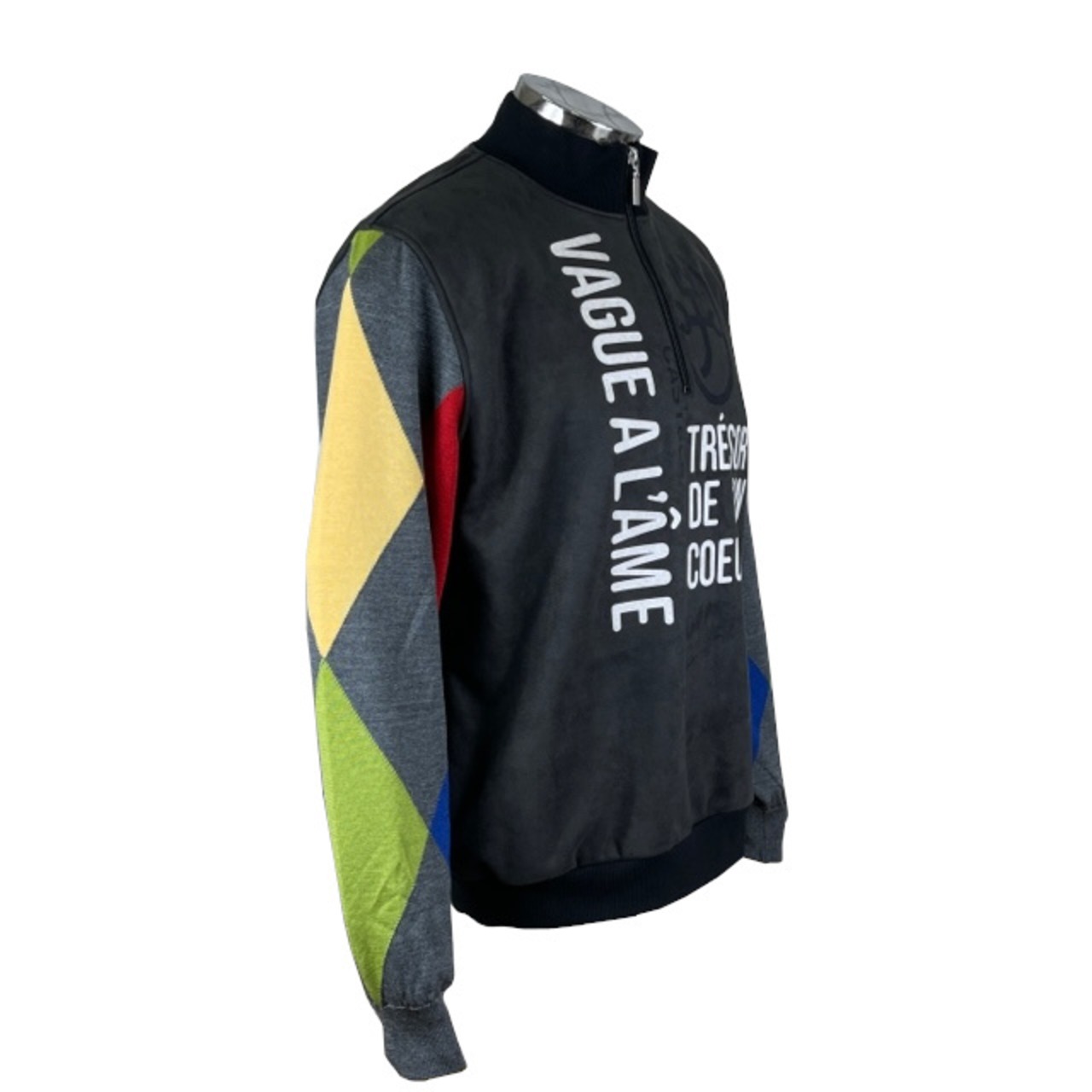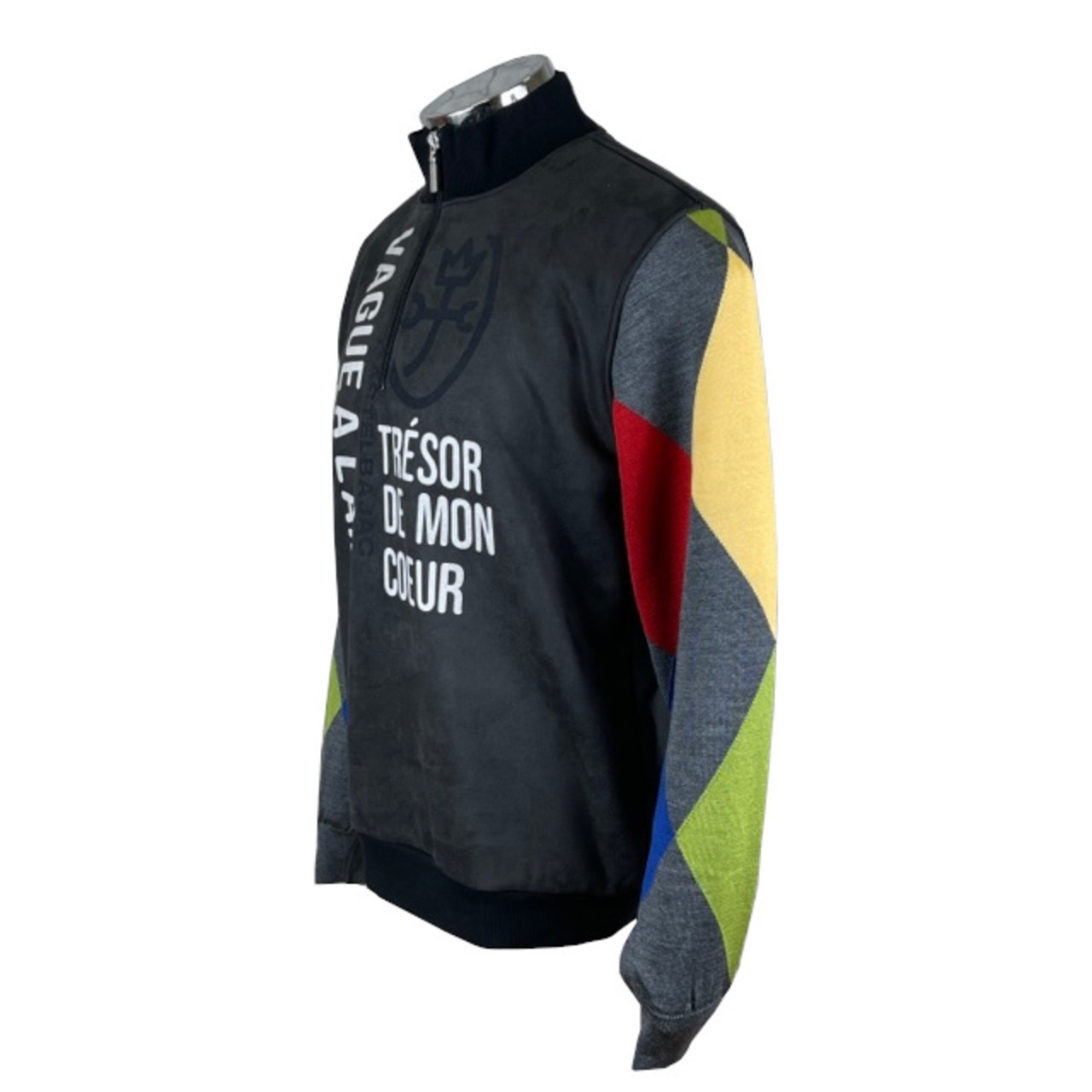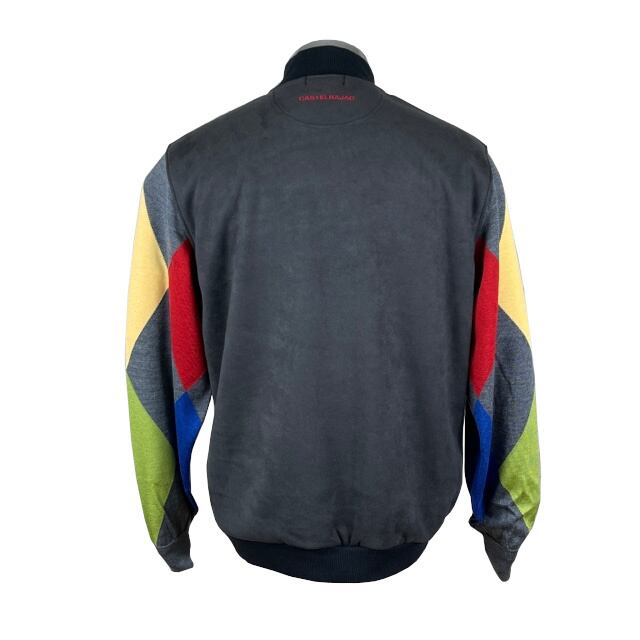スウェード調素材と袖のニット切替が高級感を演出するカステルバジャックハーフジップトレーナー。