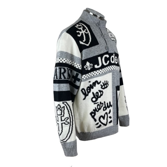 手編みの様な手の込んだ編み柄と、ループ留めの釦がポイントになったカステルバジャックハイネックセーター!
