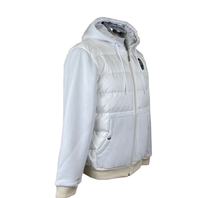 前見頃は異素材を切り替えダウンが入り袖と後ろは裏ボアの 暖かいスウェット素材を使ったジャケット。