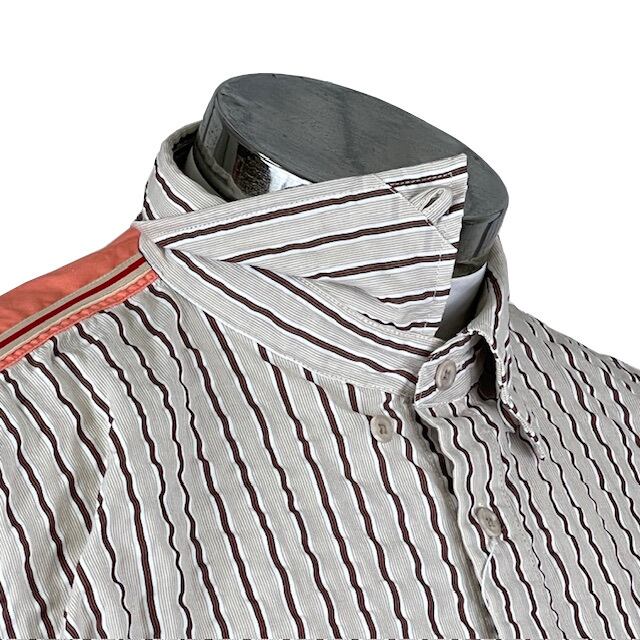 サッカー生地の切替が特徴的で、涼しげな印象を与えるカステルバジャックの長袖コットンシャツ。