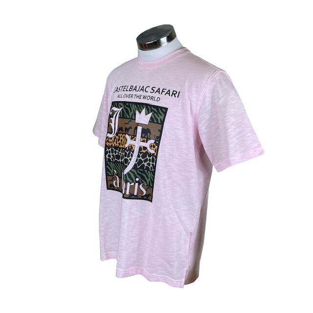サファリ柄が個性的な、カステルバジャックの半袖Tシャツ。柔らかな綿100%素材で仕上げた着心地も抜群のアイテムです。サファリの冒険をイメージさせるデザインは、カジュアルなスタイルにアクセントをプラスしてくれます。