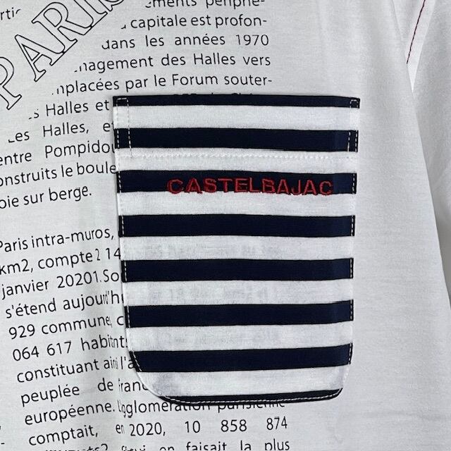 おしゃれな英字プリントが目を引く、カステルバジャックの半袖Tシャツ。