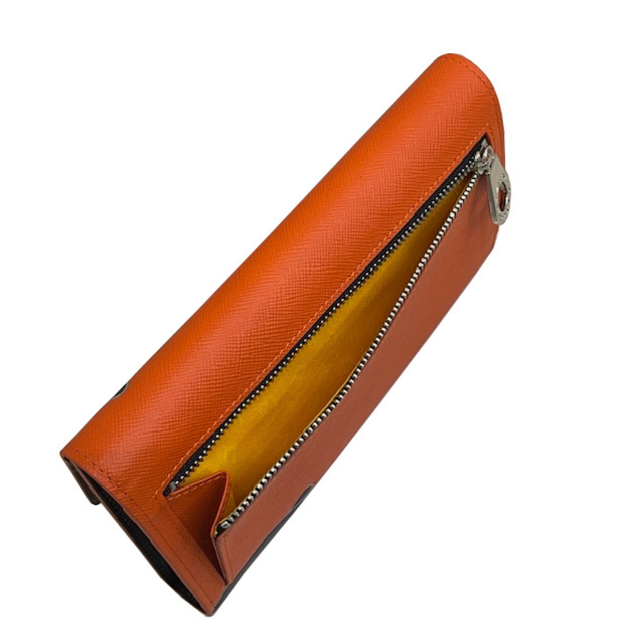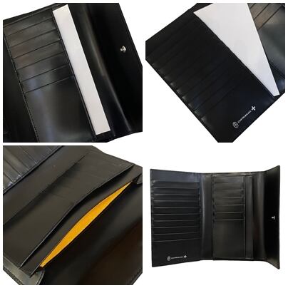 かぶせタイプの長財布を開くと、札入れが1つ、カード段が16、ポケット大が2つあります。背面にファスナー小銭入れがございます。