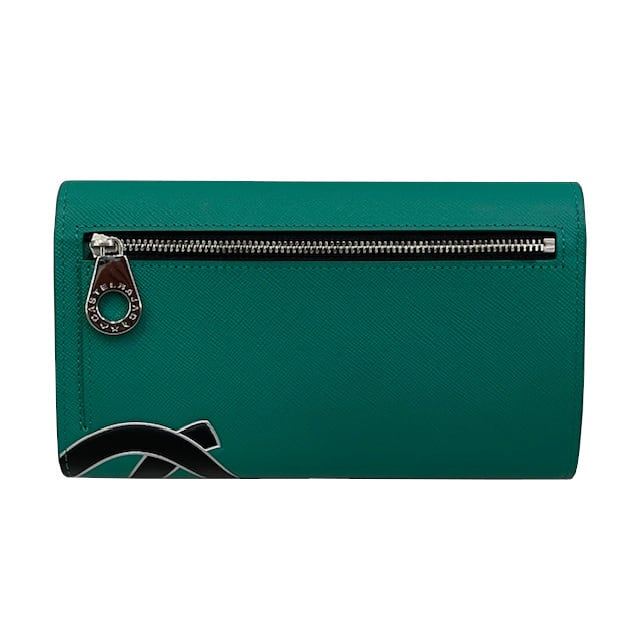 枠から王冠が飛び出したイメージの新しい家紋をポイントにした長財布。