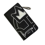 枠から王冠が飛び出したイメージの新しい家紋をポイントにしたラウンドファスナー長財布。