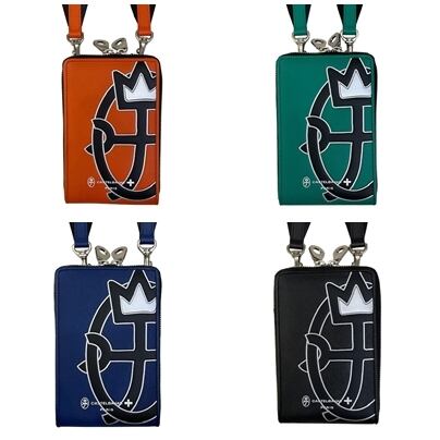 枠から王冠が飛び出したイメージの新しい家紋をポイントにしたスマホポシェット。