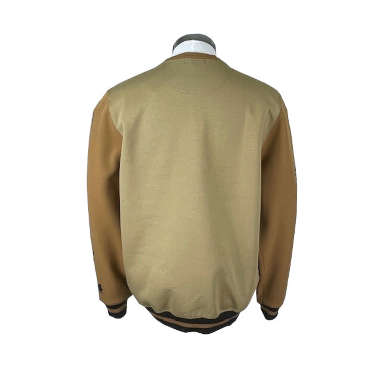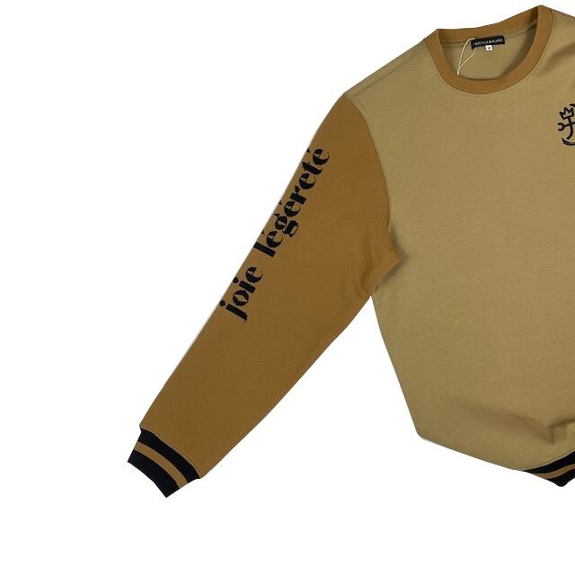 袖をニットに切り替えた一味違う高級感のあるクルーネックトレーナーです。