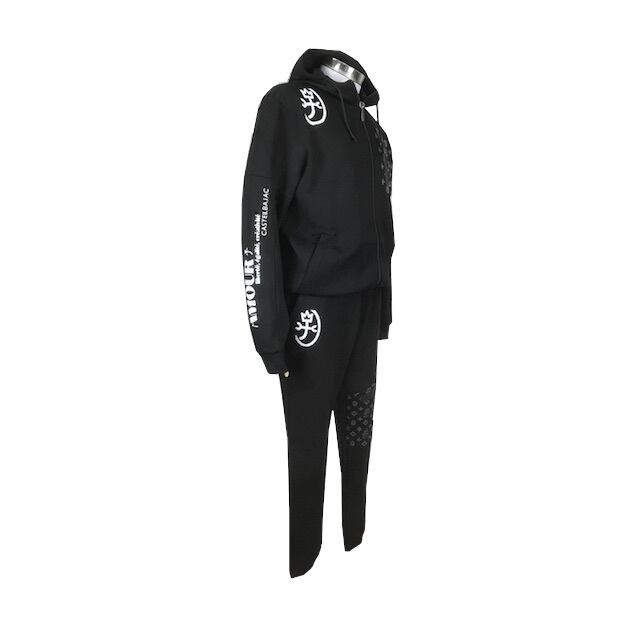 ロゴとアイコンそしてモノグラムデザインを各所に施したカステルバジャックのスウェットスーツ。