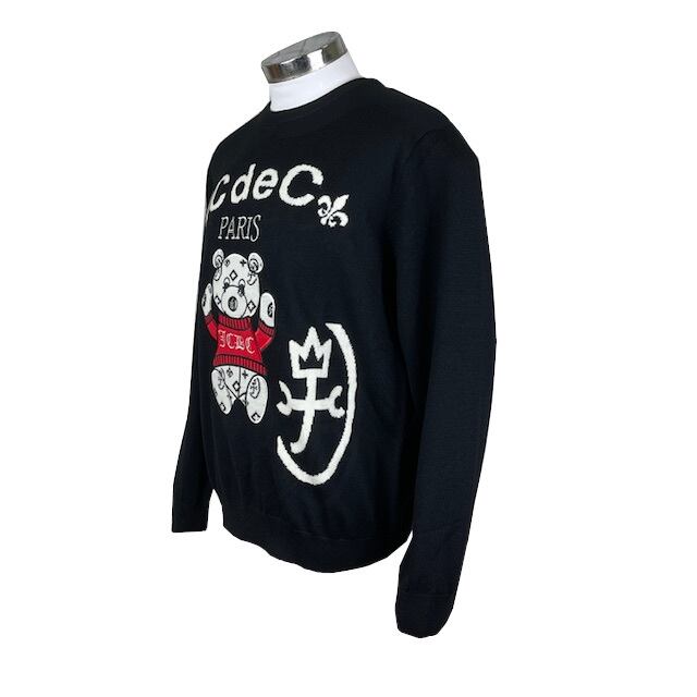 可愛いクマちゃん柄が刺繍された愛らしい、カステルバジャックのクルーネックセーターです!梳毛を使用した毛100%の素材は、柔らかく肌触りも抜群。薄生地なので、重ね着にも適しており、温かさと軽やかさを兼ね備えています。普段使いやお出かけにも活躍し、クマちゃんの可愛らしさで気分もUPします!